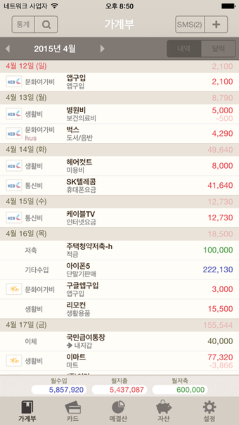 iPhone에 대하여 구름머니가계부 PC가계부 동기화